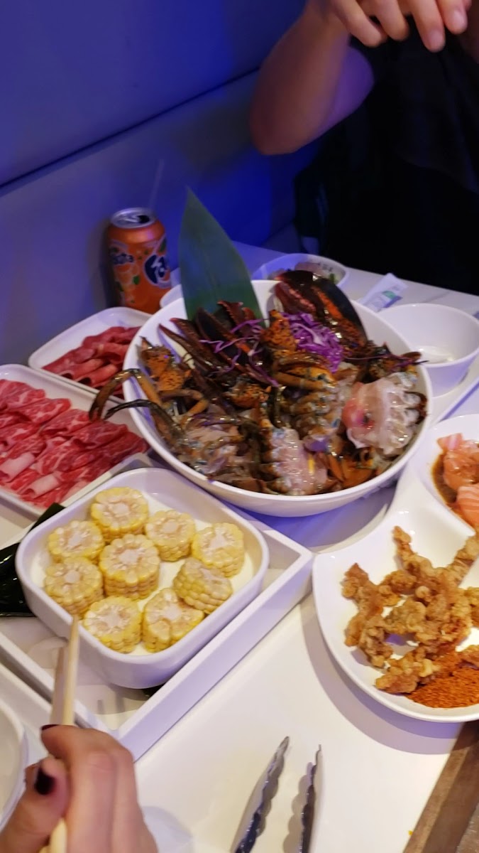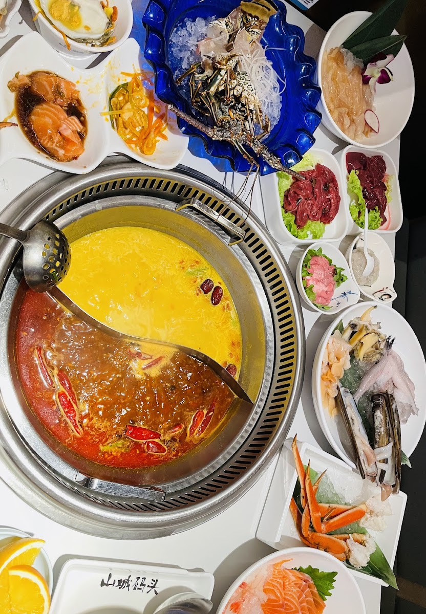 What stands out here is the emphasis on freshness and variety, especially in the seafood department. Shrimps maintain a pleasing springy texture, shellfish come with a natural sweetness, and the seafood selection spans from delicate salmon sashimi to more adventurous items like lobster and even unusual offerings like 皮皮虾 (mantis shrimp). These ingredients shine brightest when cooked in the broth, which comes in flavorful options like spicy butter and mushroom, offering a balanced but exciting heat that doesn’t overpower the other components.